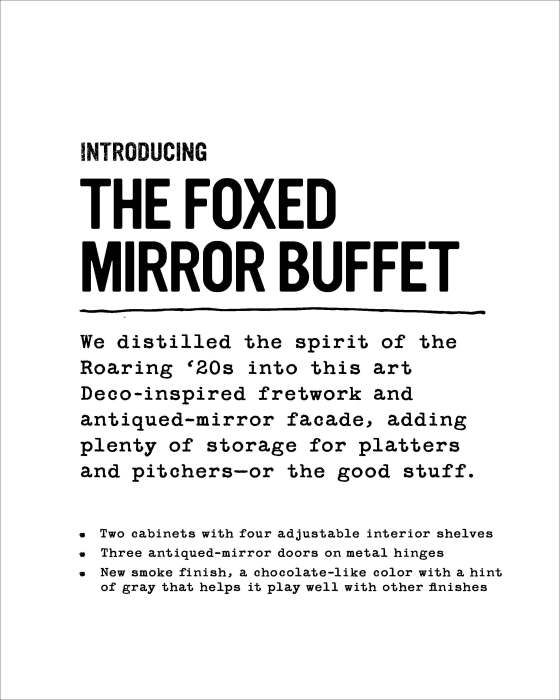 8″x 10″ West Elm store signage to introduce the new Foxed Mirror Buffet for Holiday 2011
